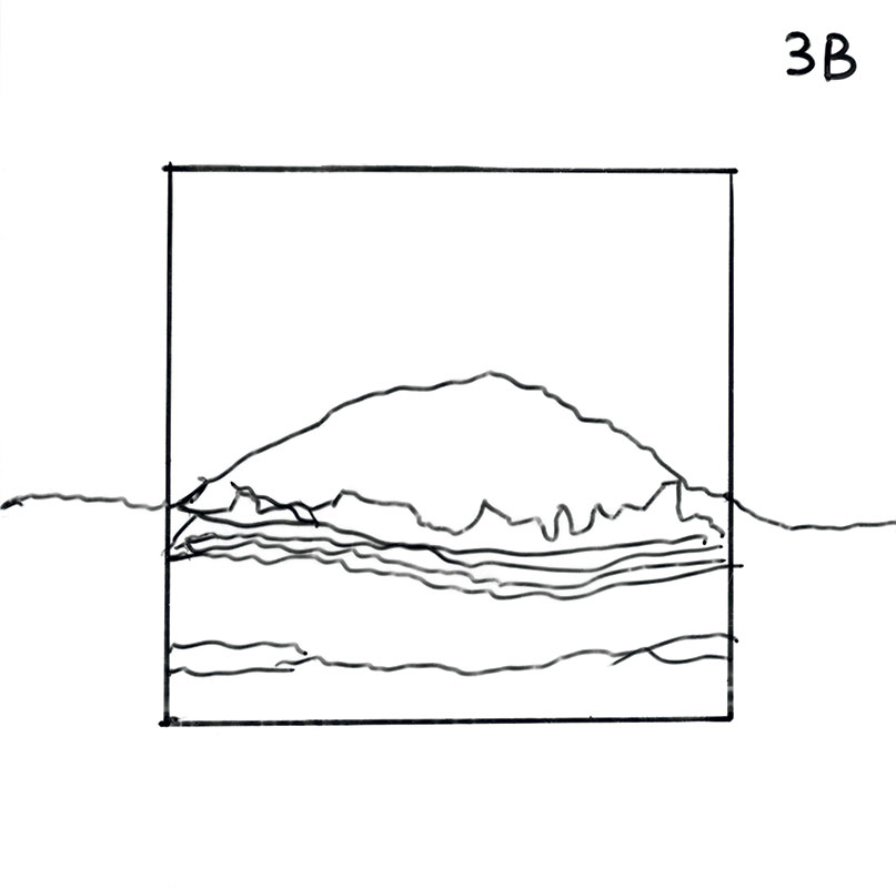 Las transparencias luego se superponen con los dibujos trazados en el mismo lugar para contrastar la cercanía del paisaje.