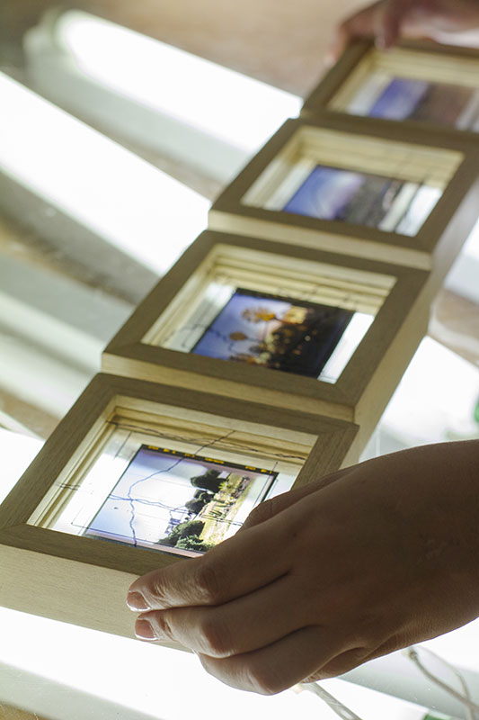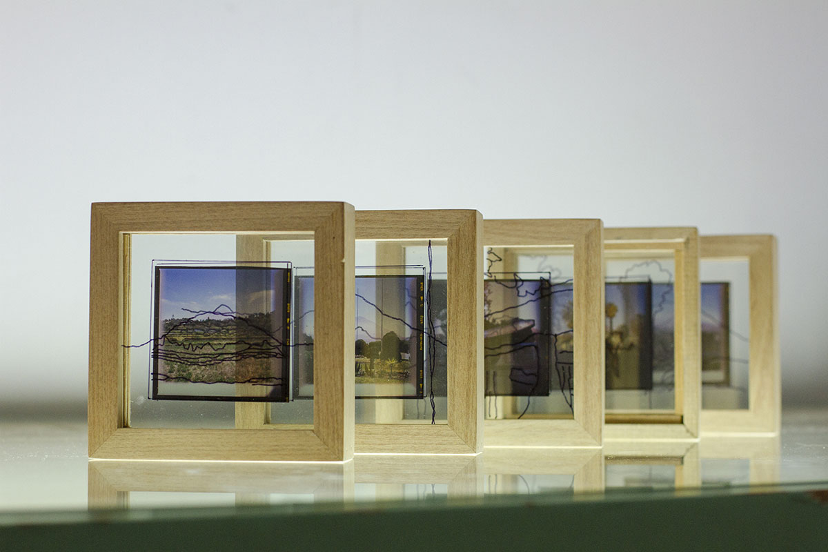 Las transparencias luego se superponen con los dibujos trazados en el mismo lugar para contrastar la cercanía del paisaje.