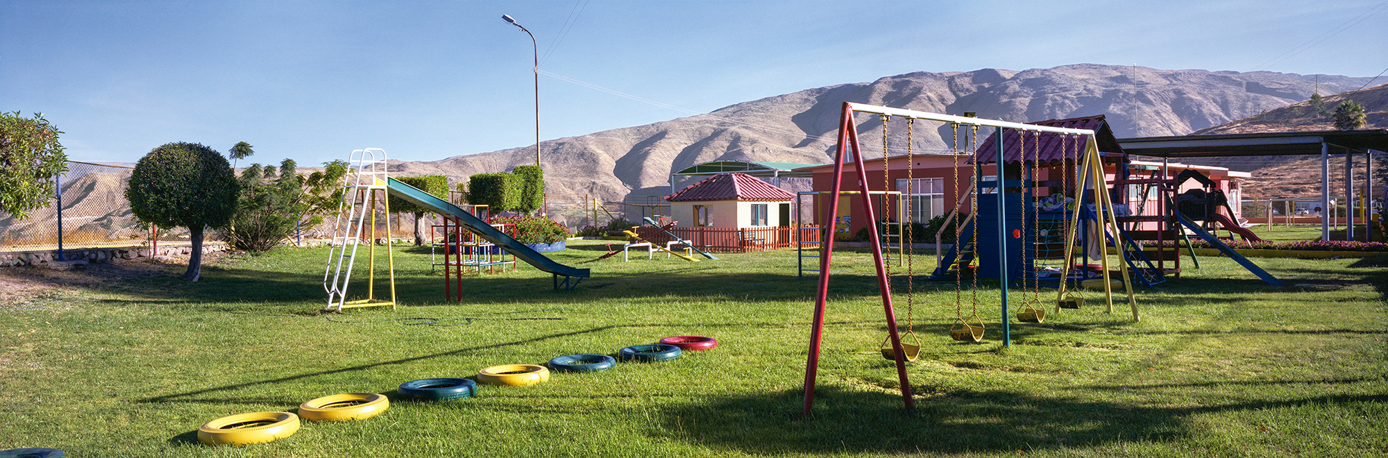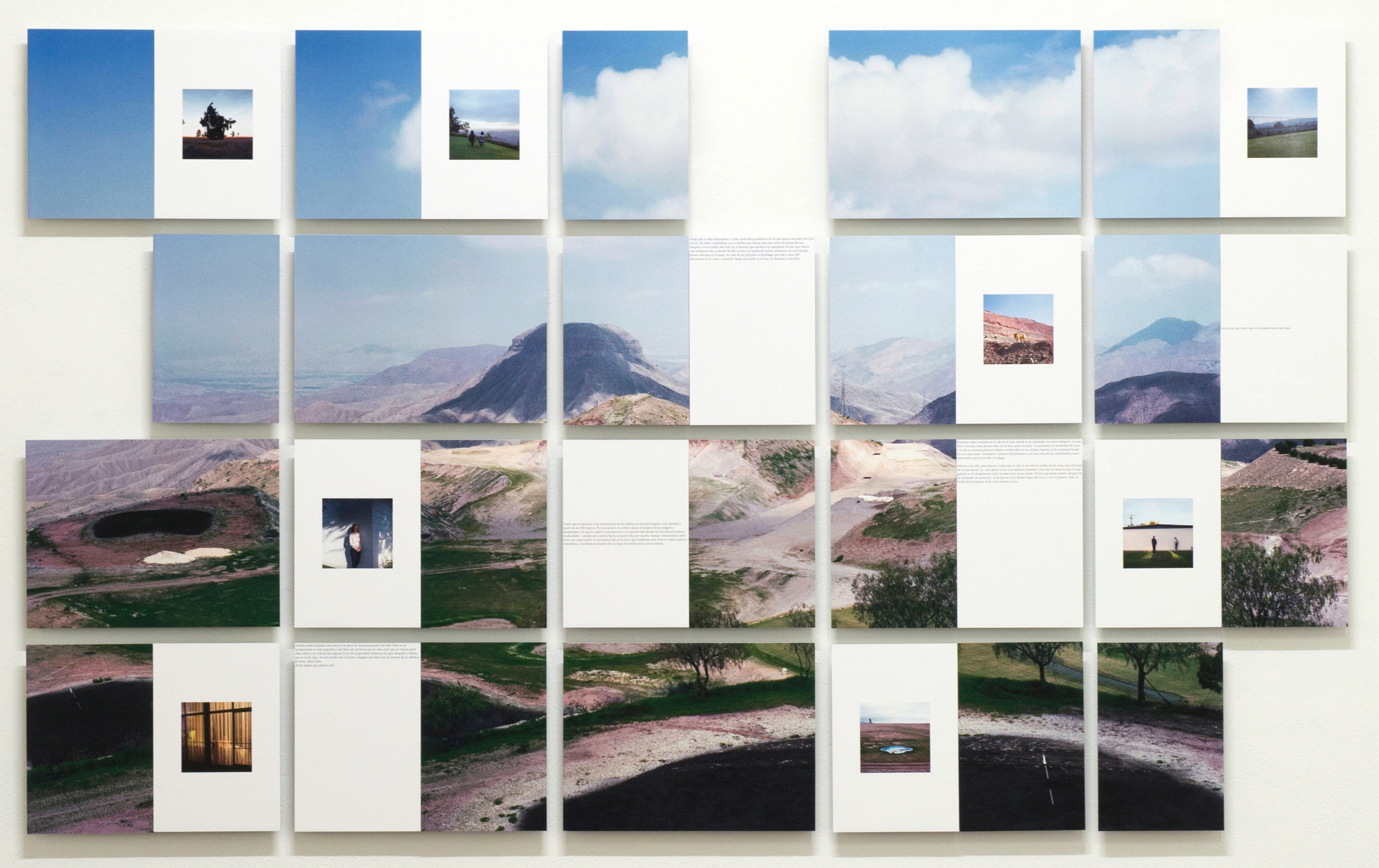 En las fotografías el territorio es visto como un paisaje idílico, con jardines amplios con vista a las montañas, pero donde la valoración afectiva se pierde fácilmente por ser un lugar desequilibrado y monótono a la vez, bello y a su vez triste.